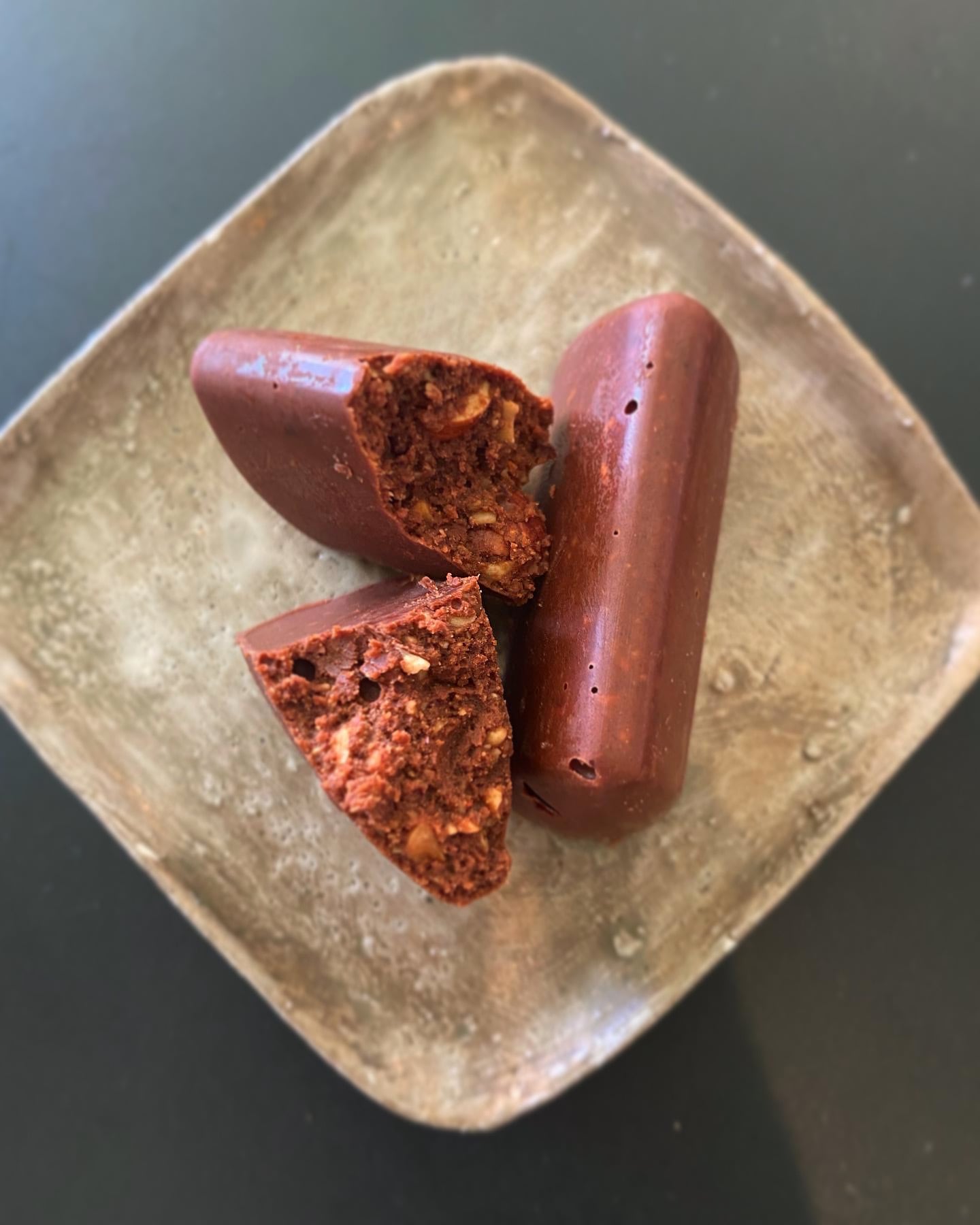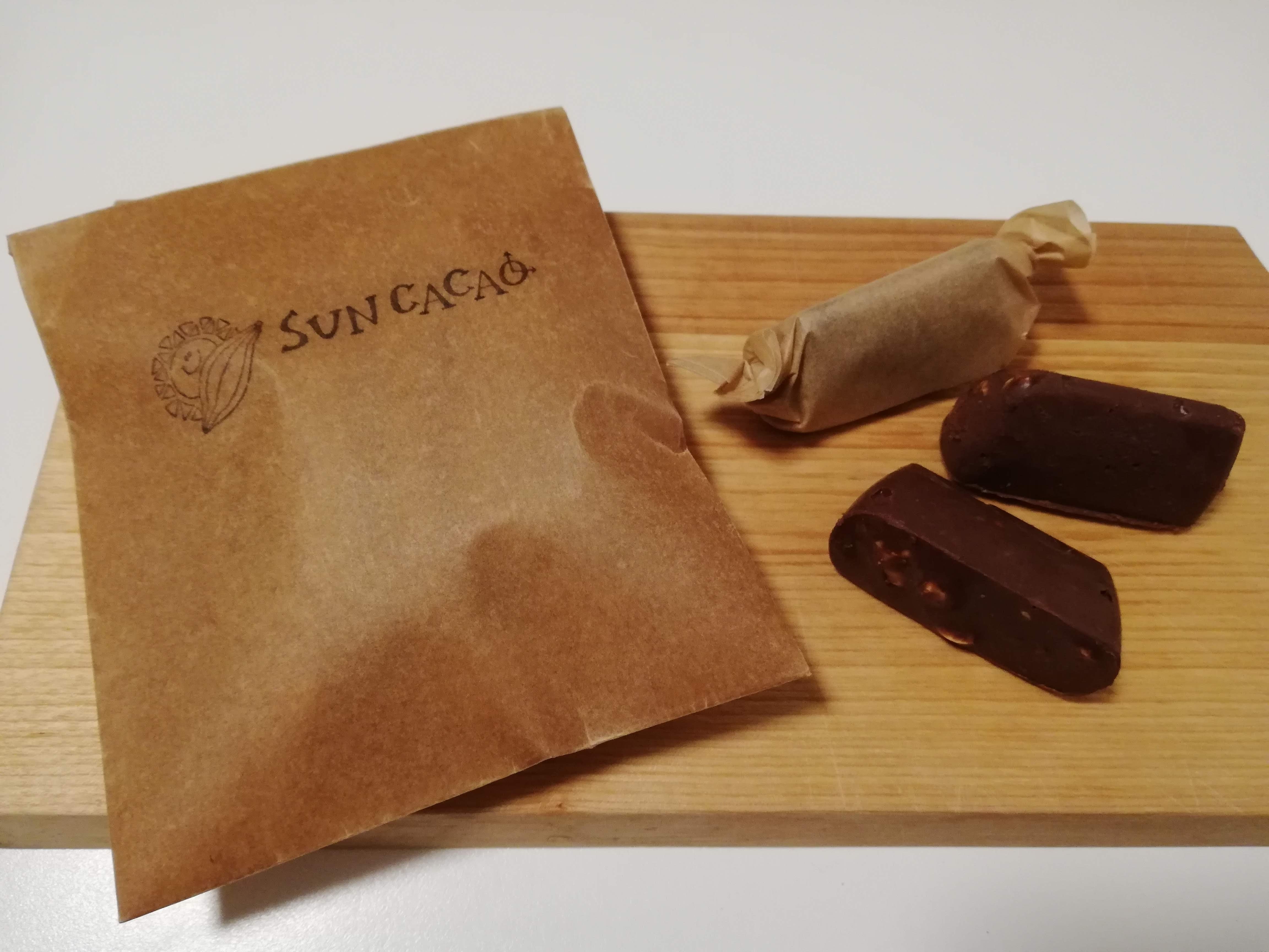 タンザニア産カカオ60%のチョコレートに自家製のアーモンドとヘーゼルナッツペーストと刻んだカカオ、アーモンド、ヘーゼルナッツを混ぜ込んだチョコレートです。